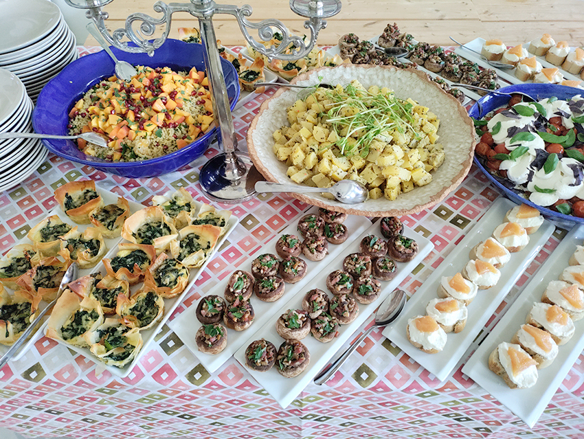 Festbuffé med en fin sammansättning av både vegetariskt och kött.